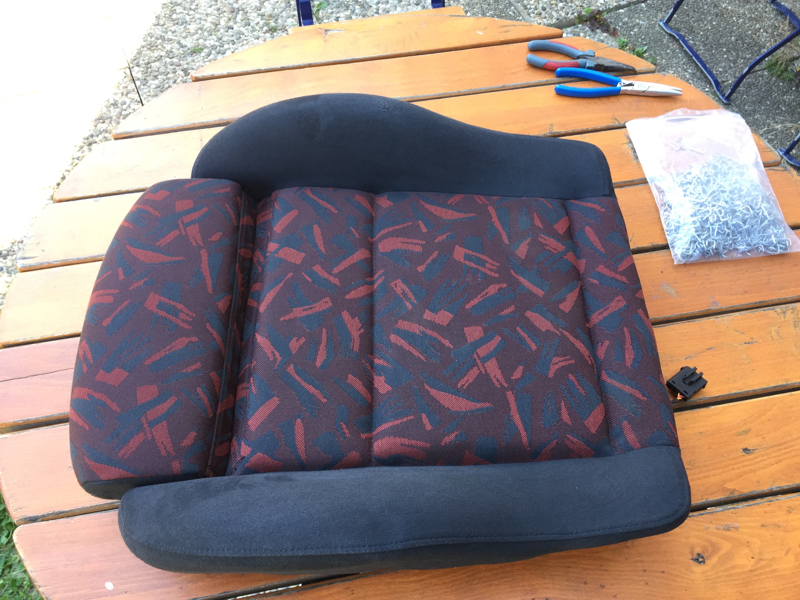 Bilder vom Sitzumbau bzw neu bezogen mit Ersatz Stoff von einer anderen Sitzgarnitur