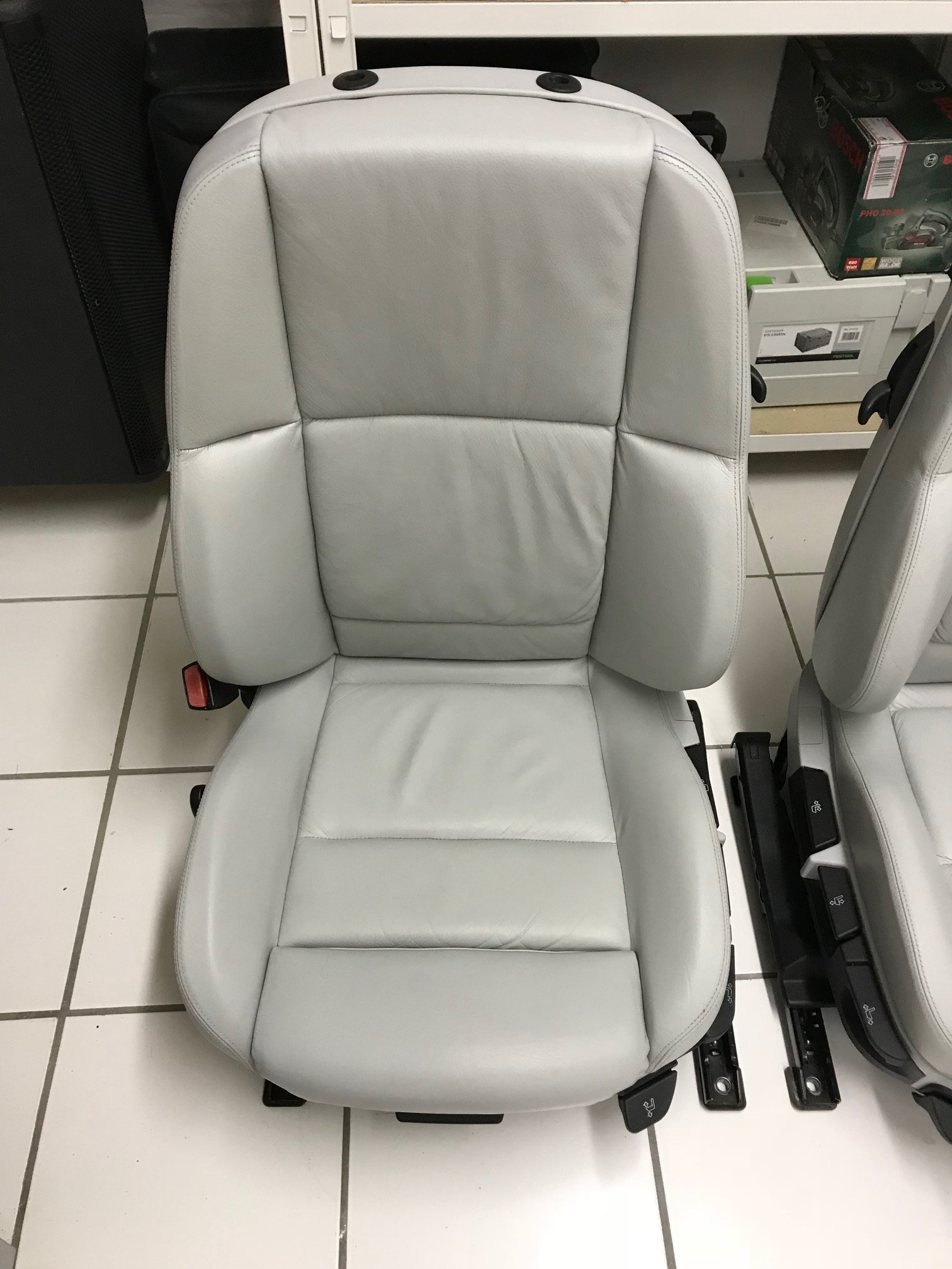 Hier ein paar Bilder vom Interieur. An den Sitzen habe ich natürlich einiges machen dürfen da wie des Öfteren die Sitzwange vom Sportsitz auf der Fahrerseite stark in Mitleidenschaft gezogen war. Die deutsche Normgarage ist halt nicht sonderlich breit und dann mit den langen Cabriotüren rutscht man gerne mal über die Sitzwange in den Sitz. Habe dann aber mit einem kleinen Trick; ich habe die beiden Rückenteile gegeneinander ausgetauscht nach der Aufbereitung; die Innenausstattung wieder ganz gut hin bekommen. Die Sitze habe ich dafür komplett demontiert und dann bei mir im Keller in aller Ruhe den Sitzen eine Verwöhnkur verpasst. Da die Sitze eh schon raus waren hat der Teppich dann auch gleich mal eine Grundreinigung verpasst bekommen.