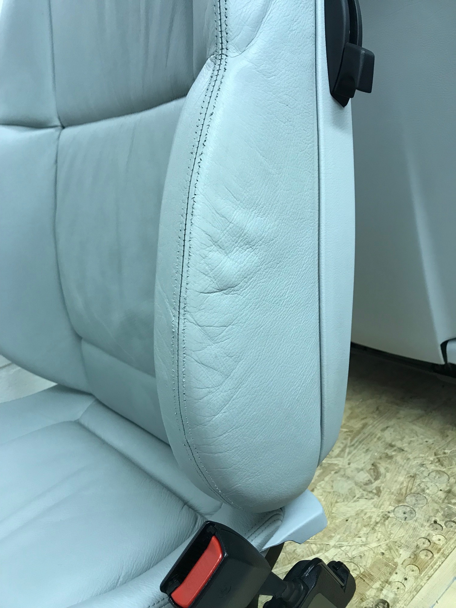 Top ist es zwar immer noch nicht, aber ein Neubezug hätte beim Sattler ca. 800-900€ pro Sitz gekostet und das Ergebnis war in meinen Augen dann auch mehr als ausreichend. Da von der Fahrersitzwange schon einiges an Material abgescheuert war ist das Material an dieser Seite auch nach der Aufbereitung immer noch sehr dünn aber da die Wange nun auf der Beifahrerseite innen ist, wird die Belastung an der Stelle sehr gering sein. Zur Not kann man dann immer noch zum Sattler fahren und das machen lassen.